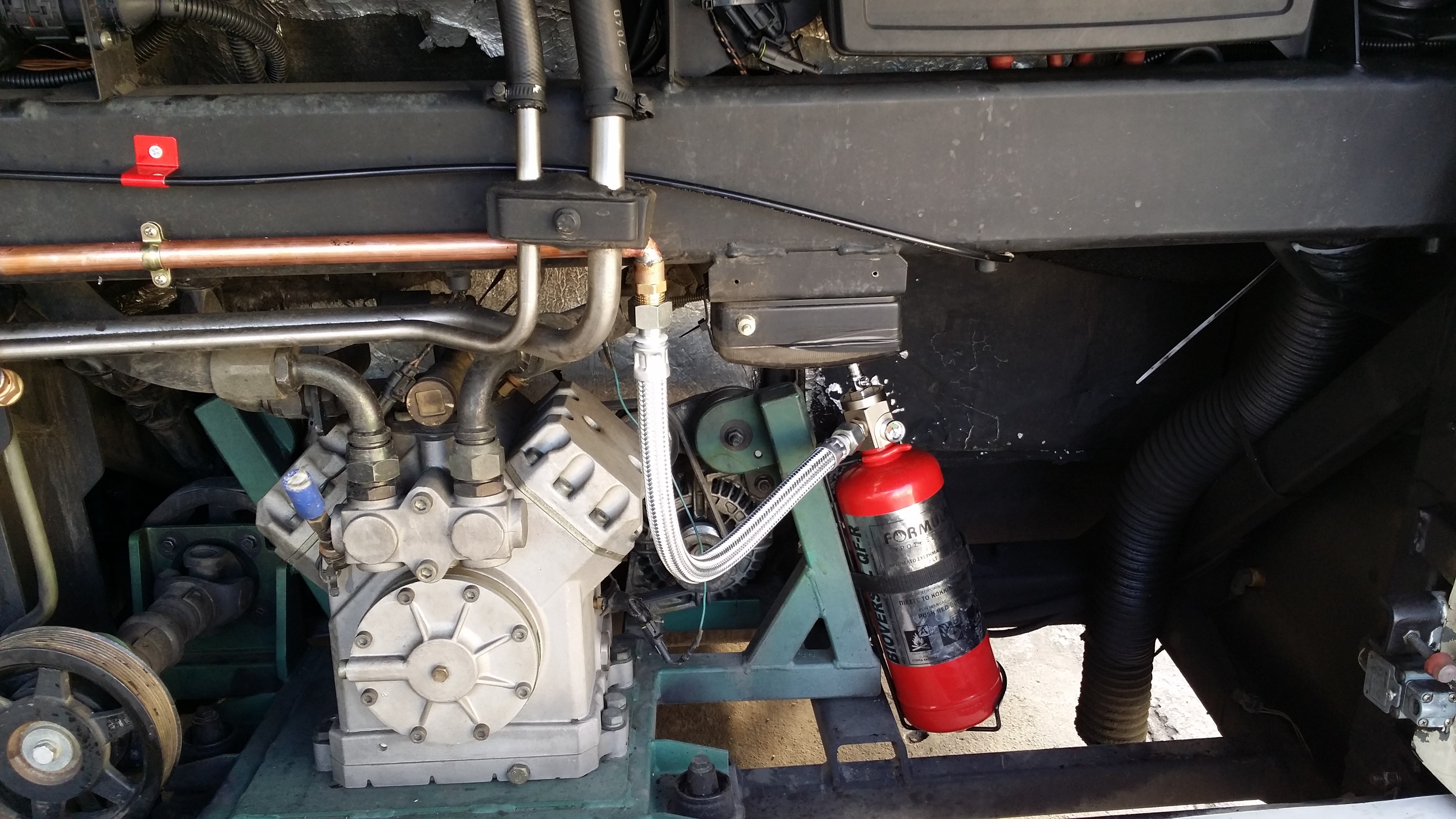 Ένα τυπικό διαμέρισμα κινητήρα λεωφορείου, μπορεί να προστατευθεί με τη χρήση μίας φιάλης με κατασβεστικό αφρό BIOVERSAL QF-R, γόμωσης 2 ή 6 λίτρων και ενός μήκους θερμικού σωλήνα FiWaGuard Sensor Tube περίπου 4-6 μέτρων. Ο θερμικός σωλήνας πρέπει να τοποθετηθεί με τέτοιο τρόπο, ώστε η ροή αέρα εντός του διαμερίσματος να μην επηρεάζει αρνητικά είτε την ανίχνευση είτε την πυρόσβεση. Ο θερμικός σωλήνας πρέπει να τοποθετηθεί επάνω από όλα τα επικίνδυνα σημεία, δεδομένου ότι το κατασβεστικό υλικό θα εκτοξευθεί προς τα κάτω και έξω από τον πυθμένα του διαμερίσματος.