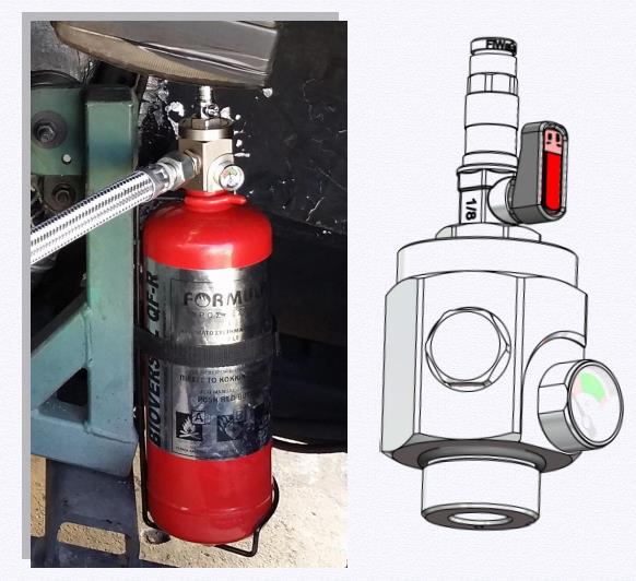 - Μονάδα μετάδοσης σήματος, η οποία παρακολουθεί συνεχώς την πίεση της φιάλης και μπορεί να χρησιμοποιηθεί για να ηχήσει έναν συναγερμό, σε περίπτωση ενεργοποίησης του συστήματος